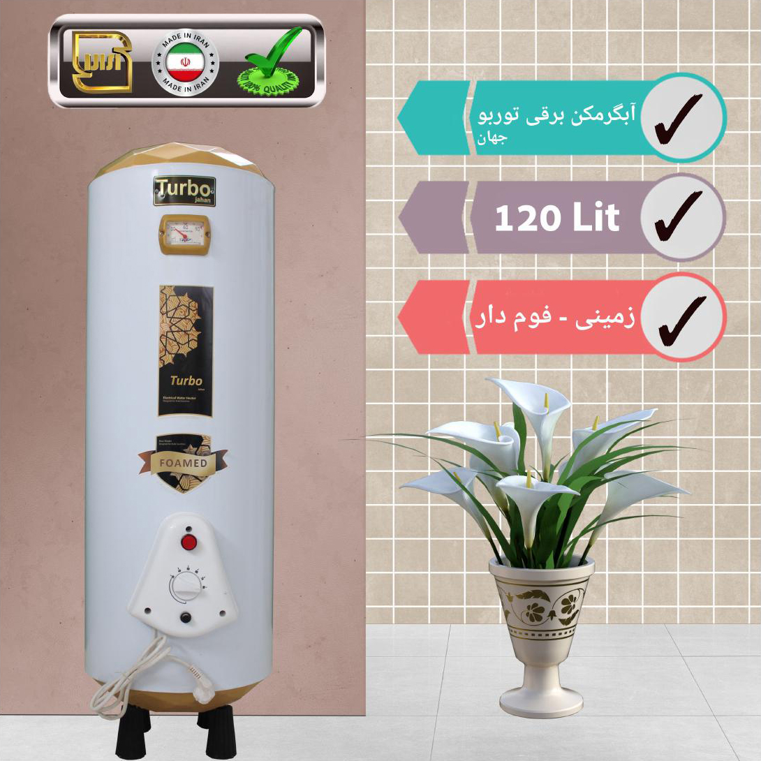 آبگرمکن برقی توربو جهان 120 لیتری زمینی فوم دار